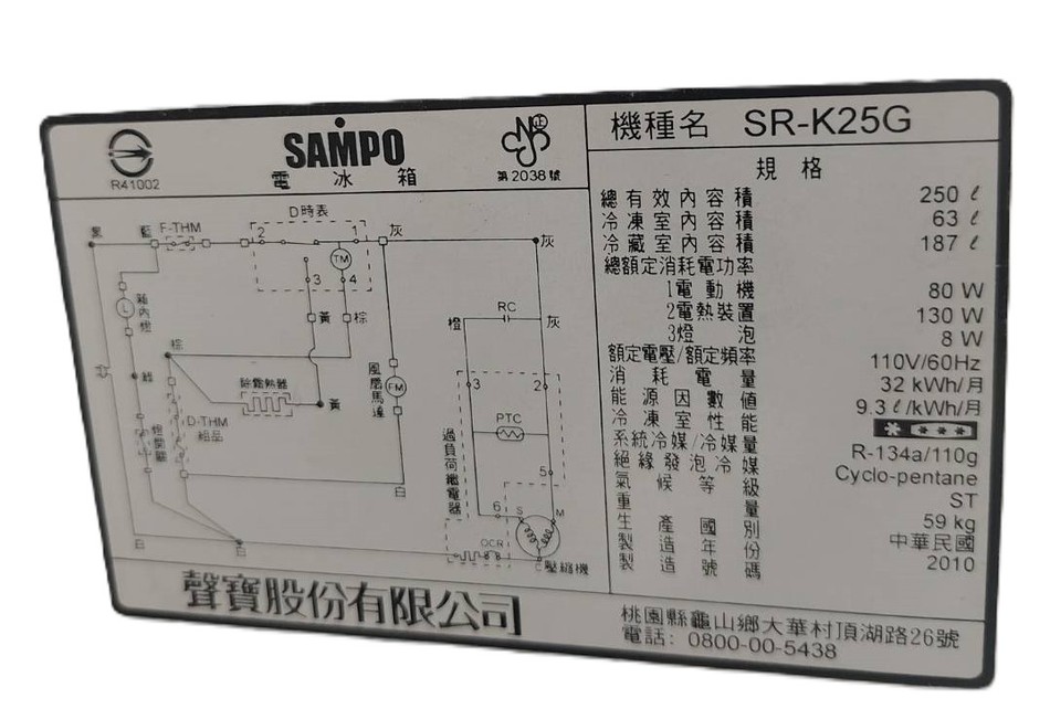 SAMPO 雙門冰箱 SR-K25G