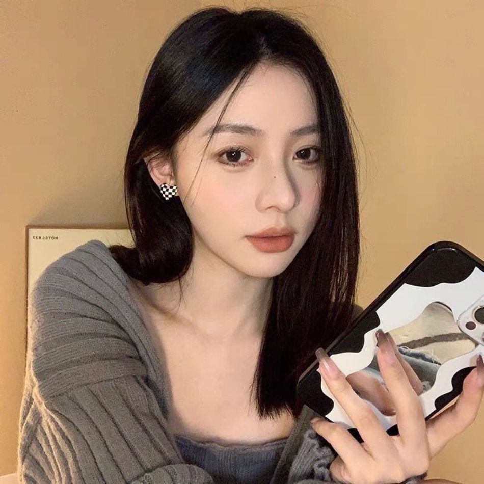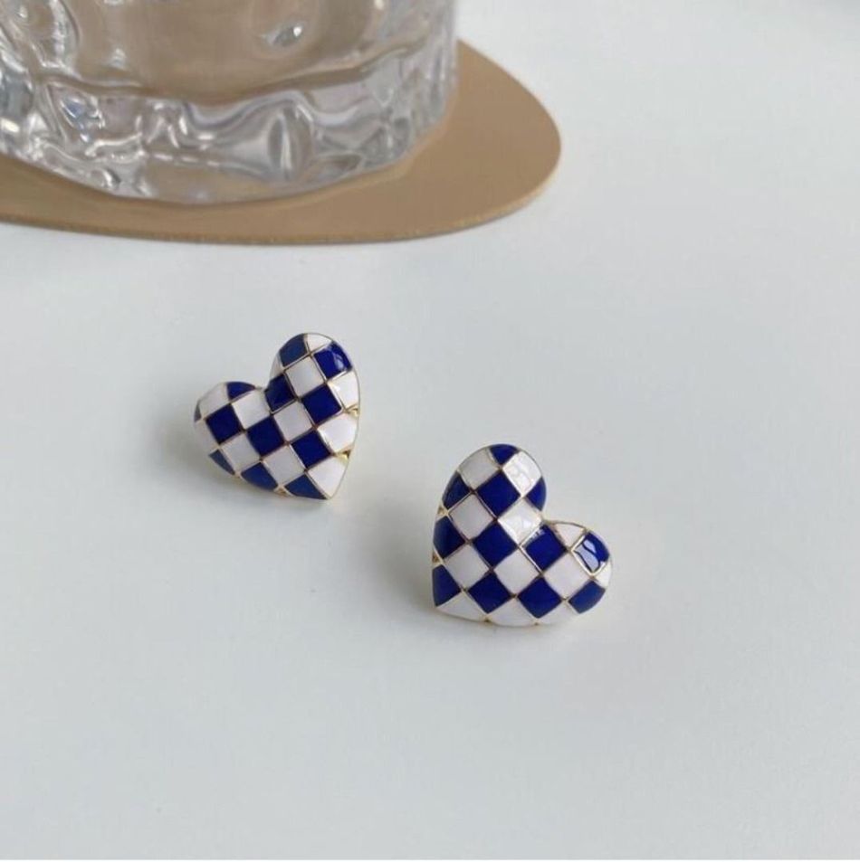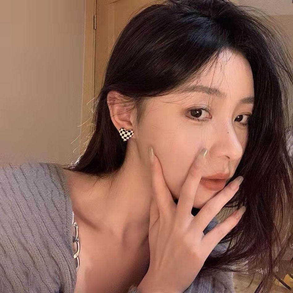 ROSEMAYR[SG-0010]S925銀針 棋盤格子 愛心 耳環 耳釘