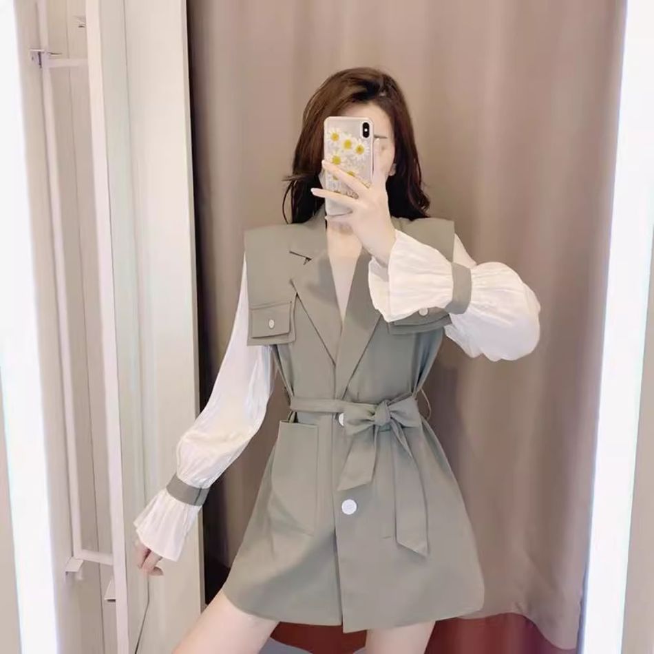 ROSEMAYR廠商寄賣-K4388韓系 氣質女神拼接荷葉袖假兩件洋裝/襯衫 (瑕疵)