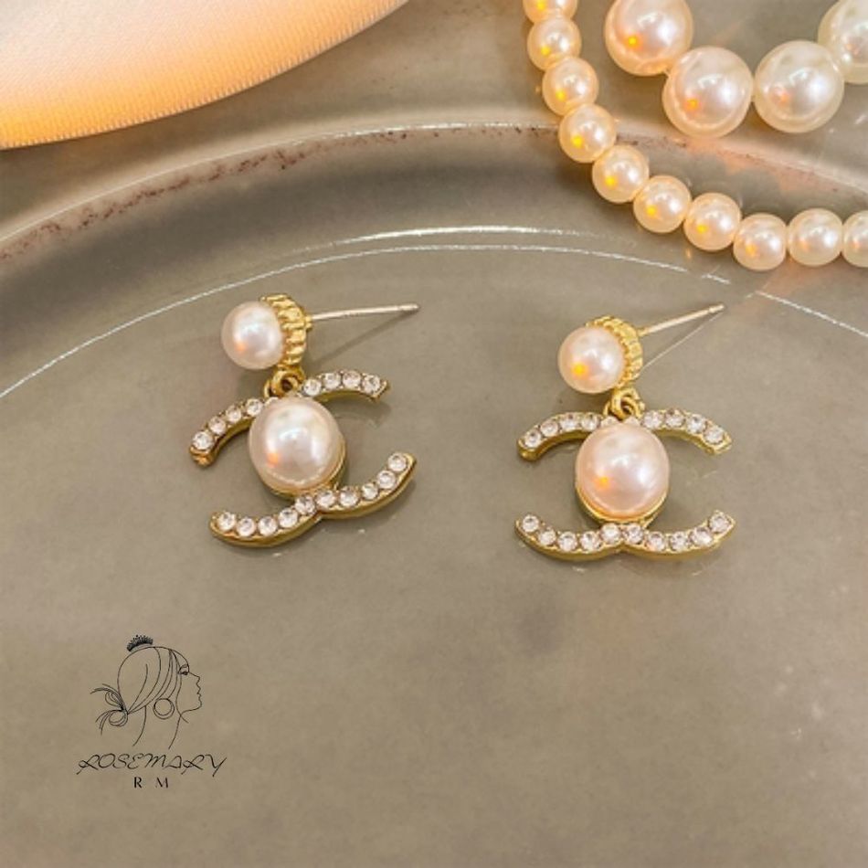 ROSEMAYR[CR-0011] 韓版 輕奢名媛 水鑽字母鑲嵌珍珠耳環