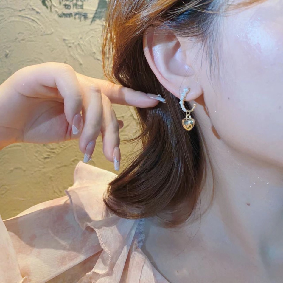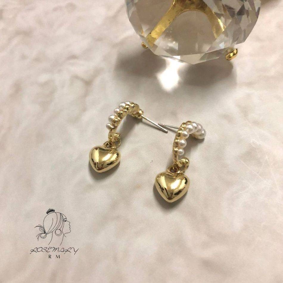 ROSEMAYR 韓版 簡約氣質半圓嵌珍珠吊墜愛心耳環