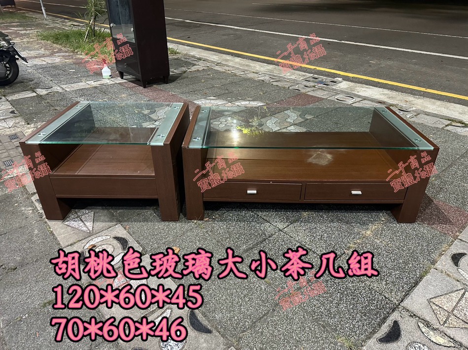 鑫勝2手貨-胡桃色玻璃大小茶几