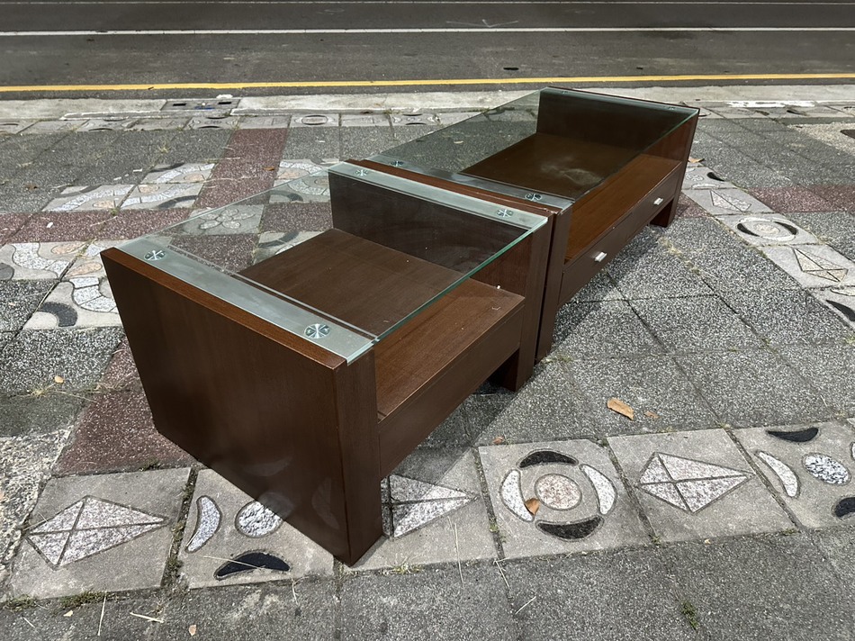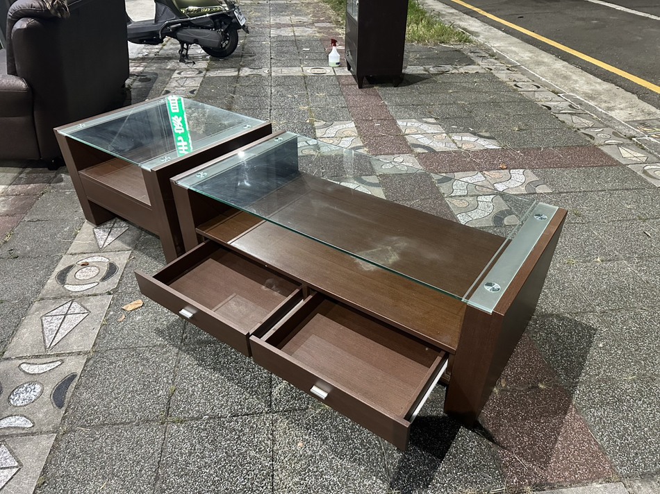 品項:胡桃色玻璃大小茶几