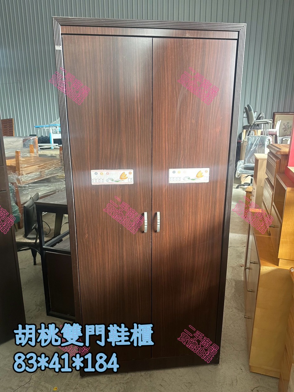 鑫勝2手貨-胡桃色雙門高式鞋櫃