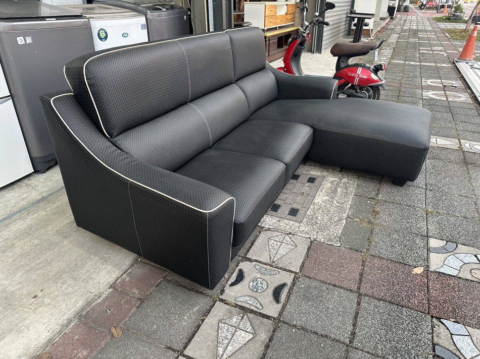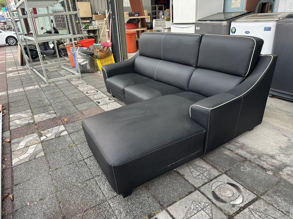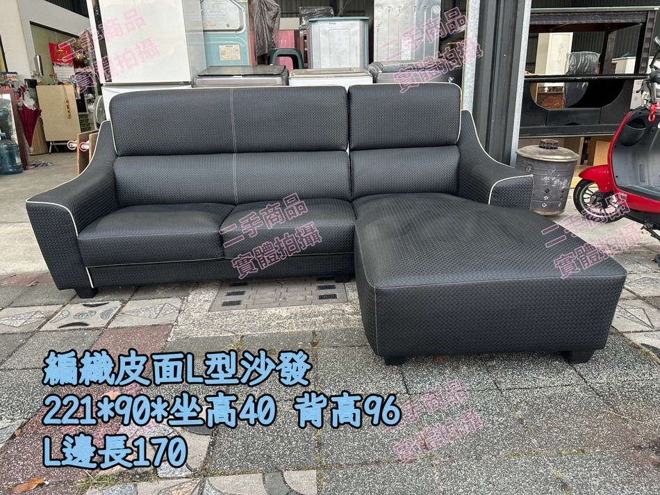 鑫勝2手貨-編織造型皮面L型沙發