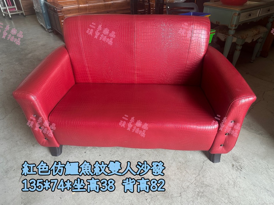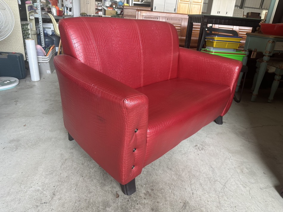 鑫勝2手貨-紅色仿鱷魚紋雙人沙發