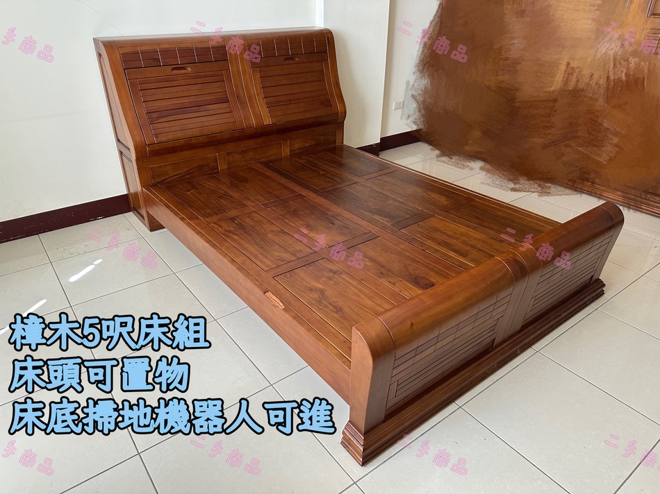 鑫勝2手貨-樟木全實木雙人5呎床架