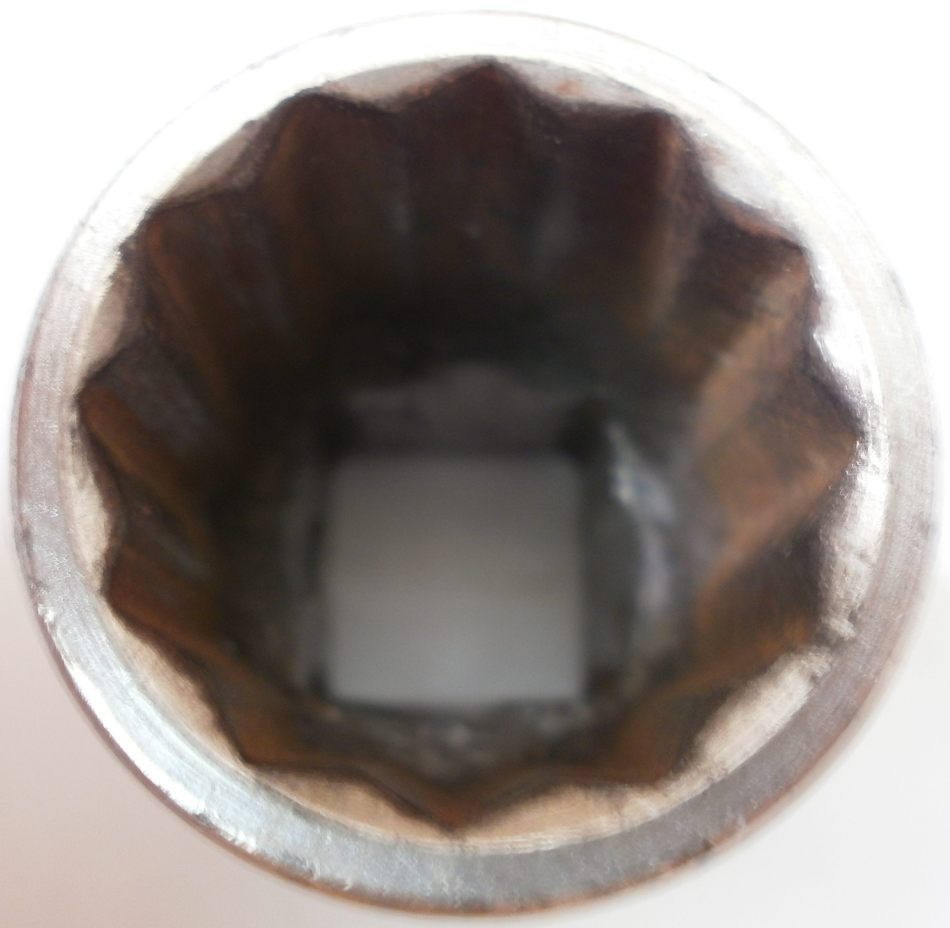 1 + 1/16吋梅花套筒,方孔對邊19.4mm (約3/4吋) (方孔側壁鋼珠已掉落遺失)