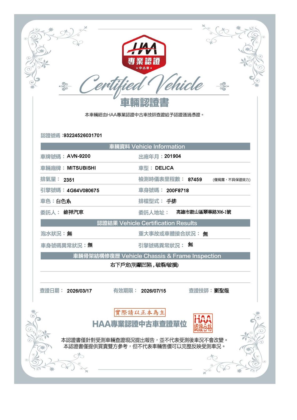 廠牌:三菱 型式:得利卡 手排