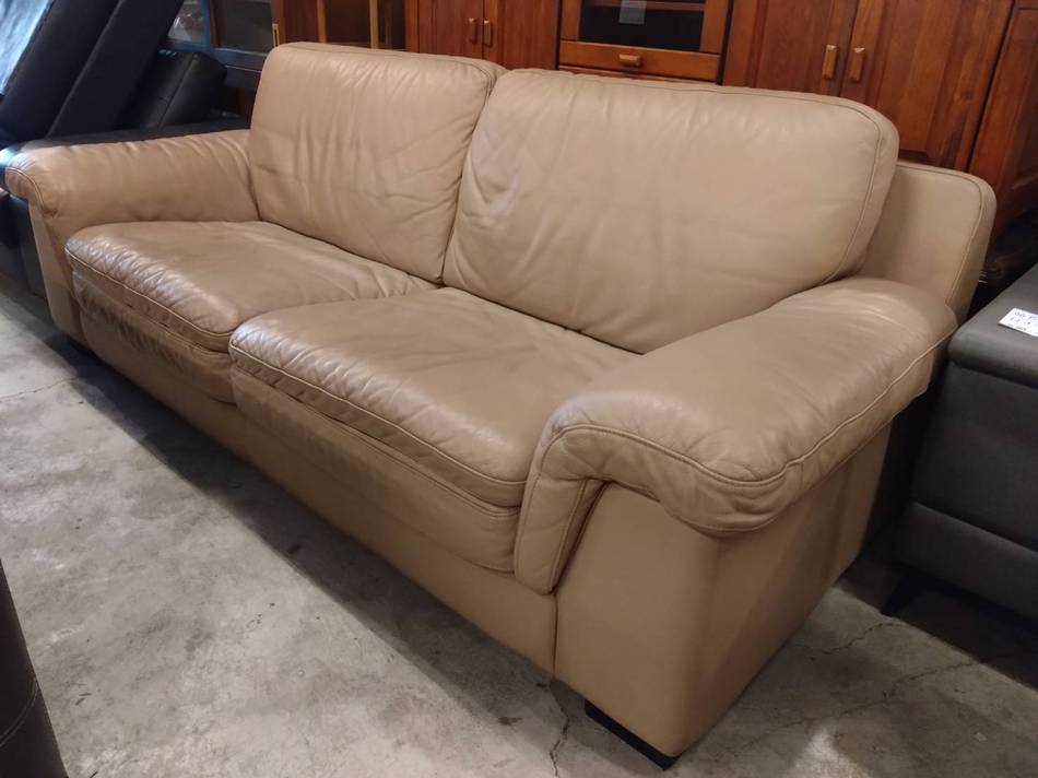 大台北二手傢俱A-3人座牛皮沙發